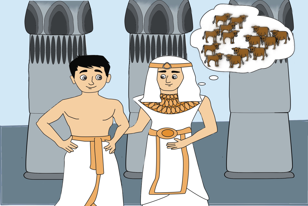 Pasaron dos años y el Faraón soñó que del río salían siete vacas gordas y hermosas, detrás