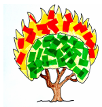 Cada niño recibirá una llama de fuego y tendra que pasar el tejo saltando y finalmente pegarlo en el tronco, se formará lo mostrado en la imagen a la izquierda.